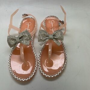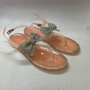 Girls Jessica Simpson Jelly Bow Sandals Size 3 Peach/Silver NWOT