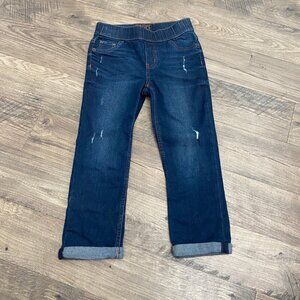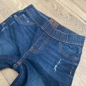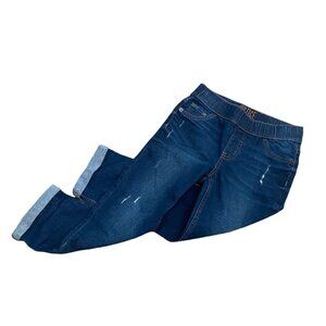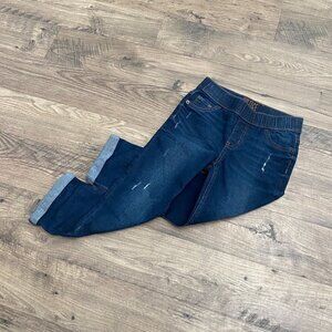 Girls Justice Dark Wash Rolled Hem Cropped Distressed Pull On Jeans Size 10 Slim