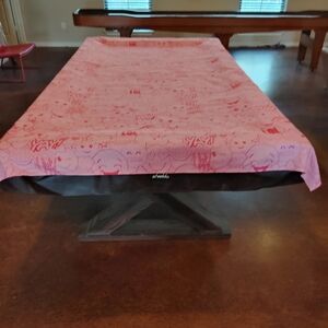 Vibrant pink Justice twin flat bed sheet with a playful graphic prints. Features smiley faces, bows, puppy dog, unicorn, popcorn, french fries, hearts and fun text, etc
