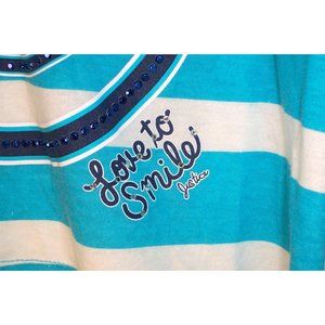 Justice Smiley Face Top 12 Rhinestone Bling Striped Blue White