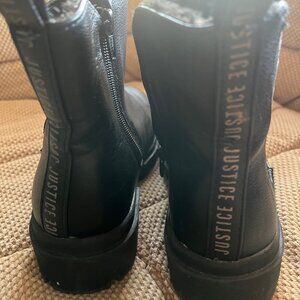 Girl's Justice size 3 Black Side Zip Up Fur Lined Boots GUC