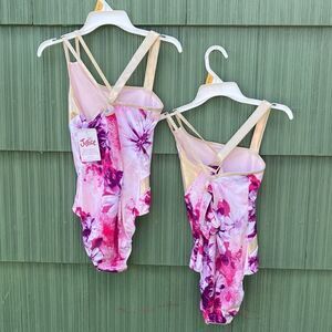 This classic leotard from Justice is a timeless piece to add to your dancer or gymnast's collection. A mash-up of foil and floral print with a double-strap, one shoulder design will add confidence to your girl! This leotard is lightweight and comfortable, so when you move, it moves with you. Pair it with the included matching scrunchie and this leotard will keep you feeling stylish and comfortable all day.