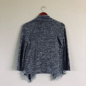 Girls size 7 Justice open front heather gray long sleeve cardigan sweater with lace trim in great preowned condition. 14” pit to pit, 14” pit to hem side length. No flaws, clean nonsmoking home.