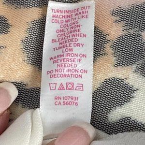 Tumble dry low. Warm iron if needed. Do not iron on decoration.