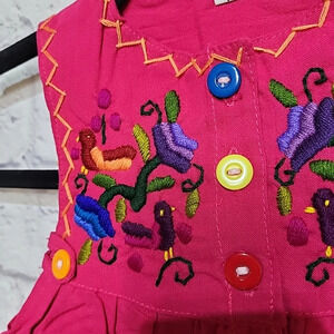 Girls / Kids Fuchsia Pink Embroidered Sleeveless Button Up Dress EUC