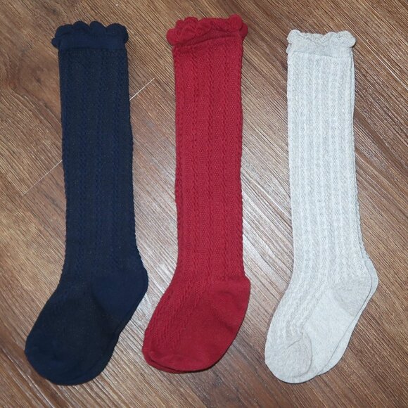 Girls Knit Boot Socks Tall Ruffled Edge Navy Blue Maroon Heather Gray Age 3-12