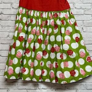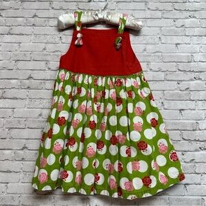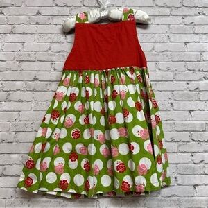 Girls Knot Tie Dress Size 3T Floral Dot Toddler Red Green Sleeveless. Good pre-owned condition. Top of dress (red) shows a bit of fading.