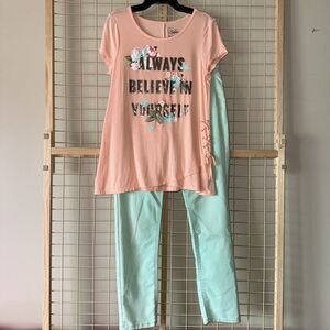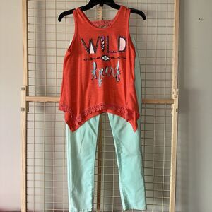 Girls L 10-12 4pc All Season Outfit Jeggings Set 1 Fleece 1 Tshirt 1 Sleeveless