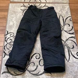This is a pair of black Swisstech snow pants, girls Large. It’s waist is adjustable and there is a zippered pocket. The front has a snap and zipper closure. EUC.