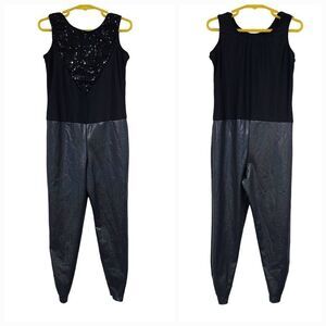 Revolution Dancewear Unitard Black Holographic Foil Sequins Sleeveless Leotard
