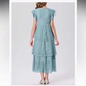 Girls Lace Maxi, Ruffle Sleeve Crewneck Tiered A-Line Swing Wedding Party Dress