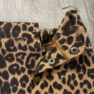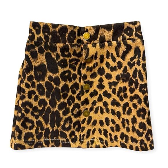 Girl’s Leopard Print Faux Suede Button Front Mini Skirt Small