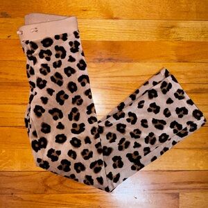 Kids fashionable leopard print set from H&M. Includes a stylish top and matching bottoms. Soft velour like fabric. Pants slightly flared. Hooded zip front 2 pocket top. Size reads 6x/7. Good condition.