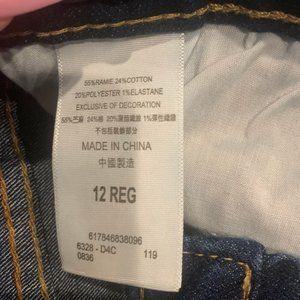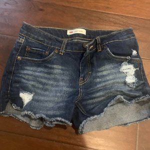 Girls distressed dark wash Levi’s shorts size 12 Cute distressed ripped details frayed hem Girls large (10/12)
