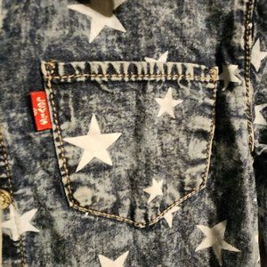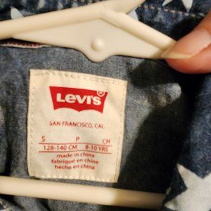 This Levi's girls' button-up denim shirt is the perfect addition to any young fashionista's wardrobe. The shirt features a cute star print design in blue, while the fabric is made of high-quality denim for durability. The size is a small and the shirt is in excellent condition, ready to be worn and loved. The shirt is perfect for any occasion and can be dressed up or down, making it a versatile piece. The shirt is from the Tops, Shirts & T-Shirts category and is specifically designed for girls' clothing in sizes 4 and up. Get this very cute top for your girl and let her feel comfortable and stylish.