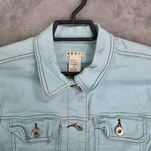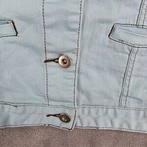 Girls Light Blue Denim Jacket Button Up Pockets Cotton Stretch Youth Size M