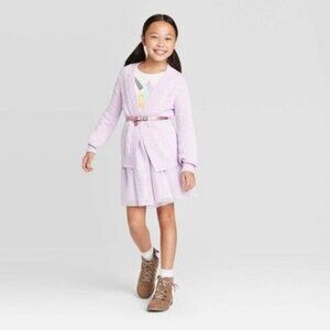 Girls Light Purple Open-Front Cardigan Sweater By Cat & Jack Soft Knit Long Slee