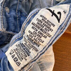 Distressed detailing on back pockets. Bottom to top = 9 inches, waist flat = 11 inches.