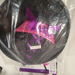 * Pink, purple and black dress with a tutu skirt that lights up, pointed witch hat and purple Star wand