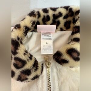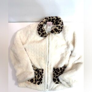 Girls Little Lass White and Leopard Print Faux Fur Zip Up Jacket Size 6