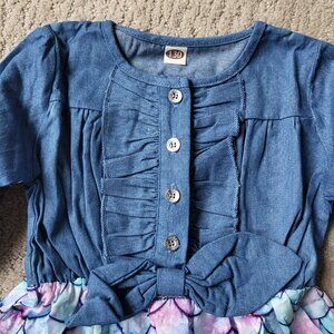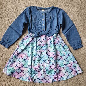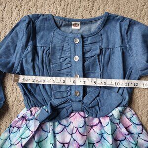 Girl's Long Sleeve Denim & Mermaid Scale Dress – Approx Size 5/6 – NWOT