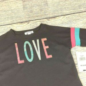 Girls Long Sleeve Top Love Printed Black Tunic Shirt Eyeshadow XS(6/6X) NWT