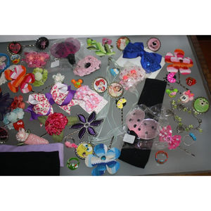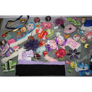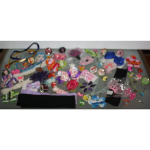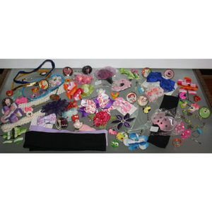 Girl's lot 0f 71 jewelry and hair accessories. Hair bows & bands, rings, hair chips, ponytail holders, necklace, bracelet, etc. All new from a boutique I closed. Great for birthday grab bags.