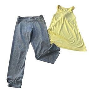 Girls Lot of 2 Racerback Tank Top & Capri Yoga Leggings L(10-12) Yellow & Grey