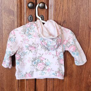 Jacket and pajamas are 12 months, robe is 0-9 months