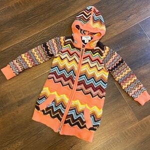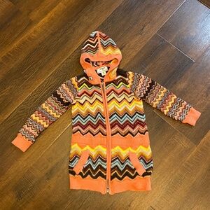 Girl’s MISSONI CHEVRON ZIG ZAG HOODIE SWEATER JACKET ZIP UP FALL AUTUMN KNIT 3T