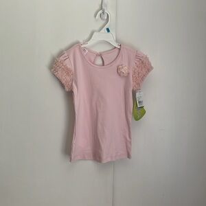 The shirt has frills and a flower