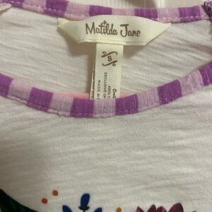 This Matilda Jane Choose Your Own Path tee is perfect for any little girl who loves to explore the world. The colorful multicolor design and 3/4 sleeve length make it a versatile addition to any wardrobe. With a size 8 fit, this T-shirt is ideal for girls who want to make a statement while staying comfortable. Whether you're dressing your child up for an adventure or just running errands around town, this tee is sure to become a favorite. This top is brand new without tags. We washed on delicate and laid flat to dry then forgot it was hanging in the closet. My girl just had a growth spurt so there will be lots more coming.