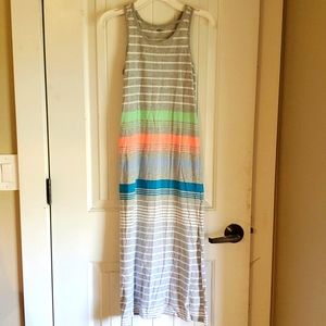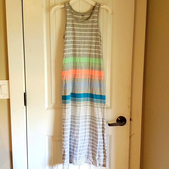 Girls Maxi Dress Size Medium (8). Old Navy brand. Grey, white, pink, green, and blue horizontal stripes.