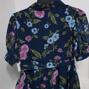 Girls Midi Navy Dress Size Medium (7-8) Floral Print Zac Kids