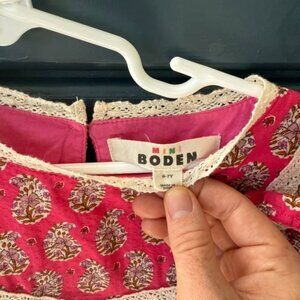 Mini Boden pink paisley dress with lace trim. Girls size 6-7. Tags were removed but this was never worn by my daughter, and never washed.