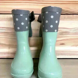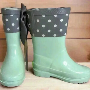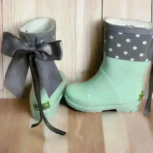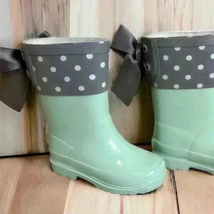 Girls Mint Green Western Chief Rain boots With Silver Bow In The Back Sz T7/8