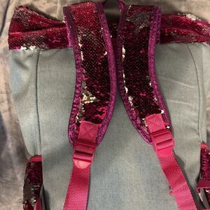 NWOT - large main compartment zips AND Velcro’s closed. Top then folds down and clips for safety. Shoulder straps are adjustable, extra zippered pocket on the front along with an open pouch on each side. Super cute!!!