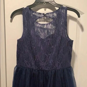 Girl’s Navy Blue Formal Lace Ruffle Dress