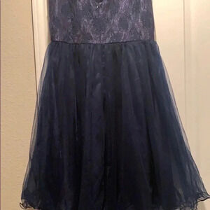 Formal Lace Ruffled Hemline Dress Navy Blue Medium