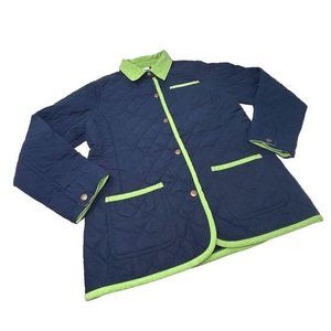 Girl's Navy Blue & Mint Green Quilted Talbots Kids Jacket - Size 14