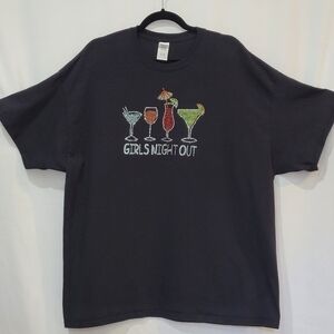 Girls Night Out Cocktail Graphic Blinged Out Short Sleeve Tee Shirt - Size 2XL