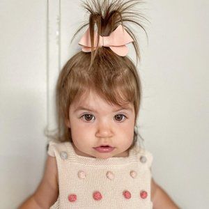 - Size: The bow measures about 3.5" wide, making it perfect for babies who are starting to have hair. Due to the bow’s size, it is recommended for babies up to age 7.