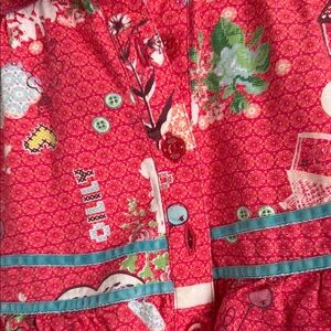 Vibrant red dress with floral patterns and ruffled layers. Perfect for a playful look.