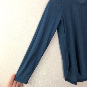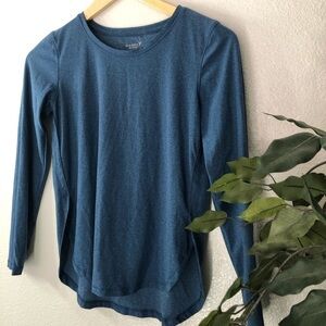 The softest shirt you’ll ever feel! A girls long sleeve active top with fun scoop bottom and little slits on the side. A beautiful teal color and high scoop neck.