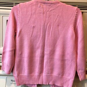 It has a pretty green rhinestone pin on it. I tried to get a picture but it didn't turn out very well. It is a very light green
