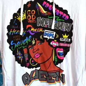 Girl's On Fire Melanin Junior Long Sleeve Hoodie Graphic Print LARGE White