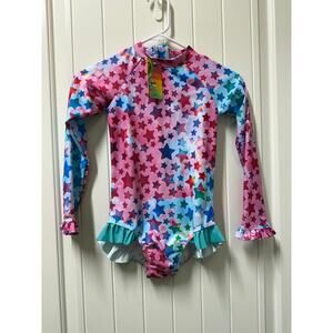 Girls One Piece Swimsuit Long Sleeve UPF 50+ Sun Ruffle Zipper Size Medium