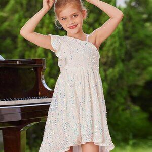 Girls One Shoulder Sequin Dress — A sparkling showstopper for special occasions.