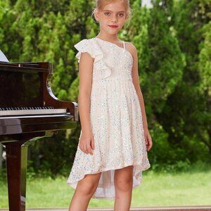 Girls One Shoulder Sequin Dress High Low Party Dress for 5-14Y