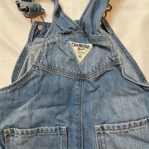-Features: Girls Oshkosh size 12-18 months denim overalls. No stains or holes.